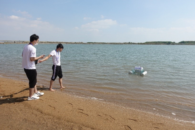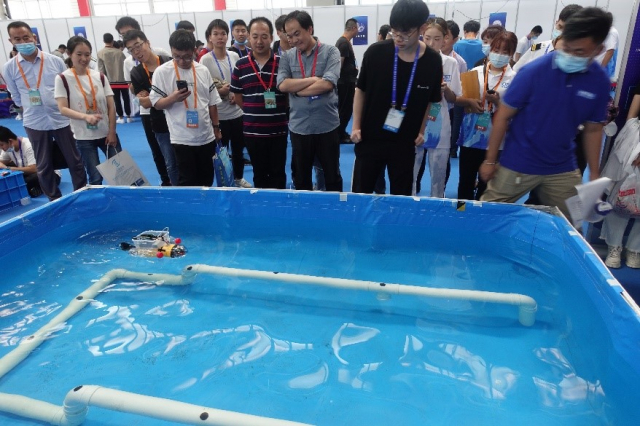 水面垃圾清理赛项是我校第二次参加,比赛是在自然开放水域中进行,由我校创新团队(队员:姜喜强、于文录、罗友涵、周迪,指导老师:查富生)自主研发、制作的清理船,以1分06秒清理10个目标物的成绩获得冠军,成功卫冕。全局视觉抢球博弈比赛中,飞凫队(队员:厚俊臣、张珈瑞、陈炜、李佩禹,指导老师:林森,潘旭东),经过一天的激战,最终获得亚军。海参捕捞模拟赛是我校首次参加的赛项,惊鸿游龙队(队员:荣健睿、张铭伟、岳宗言、徐森涵,指导老师:刘佳男,曾昭阳)经过现场设备调试、方案验证,最终获得季军。
