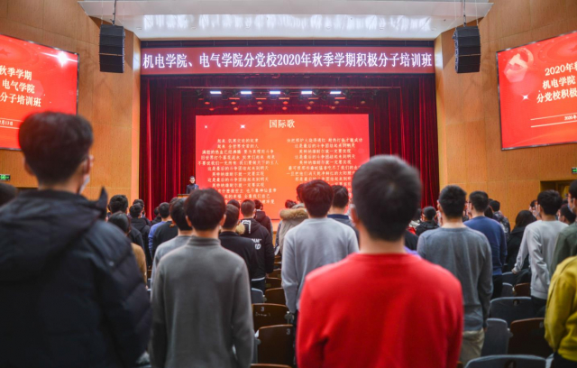 为学习宣传贯彻落实习近平新时代中国特色社会主义思想,党的十九大和十九届二中、三中、四中、五中全会精神,以习近平总书记贺信精神为引领,机电学院、电气学院分党校2020年秋季学期积极分子培训班正式开班,来自机电学院、电气学院的600余名入党积极分子参加了本期积极分子培训班。2020年12月13日早8:00,积极分子培训班开班仪式于主楼礼堂正式开始,开班式由机电学院学生党建负责人黄郅博老师主持。