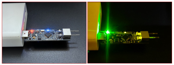 针对上述问题,团队提出基于瑞利-贝纳德对流的水平核酸扩增新机制,实现毛细管单端加热时,溶液受热上升、遇冷下沉,形成稳定对流循环,使核酸分子在密闭空间内自主穿越变性、退火、延伸三温区。同步开发的“毛细自装载”技术利用液固界面张力,仅需4.5秒即可完成13微升(μL)样本吸入与双端密封,彻底消除气泡干扰。配合振动隔离装置,系统在车载颠簸及30°倾斜环境下仍可稳定运行。基于该技术的终端便携式检测设备,可集成于U盘实现超便携检测目标。通过130例临床试验(包括乙肝、新冠、甲流),准确率为96%,特异性为100%,检测限低至10拷贝数每微升。